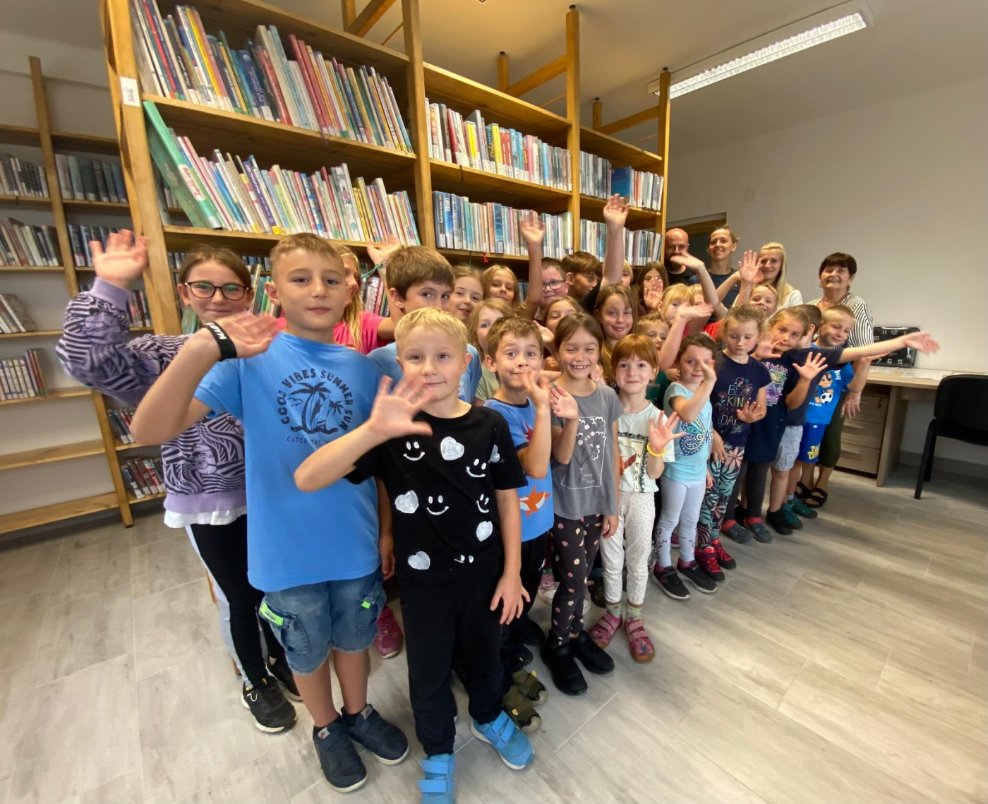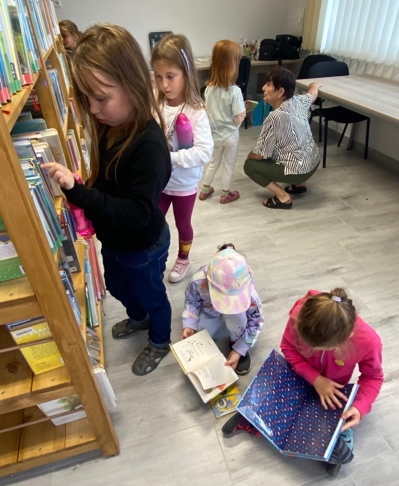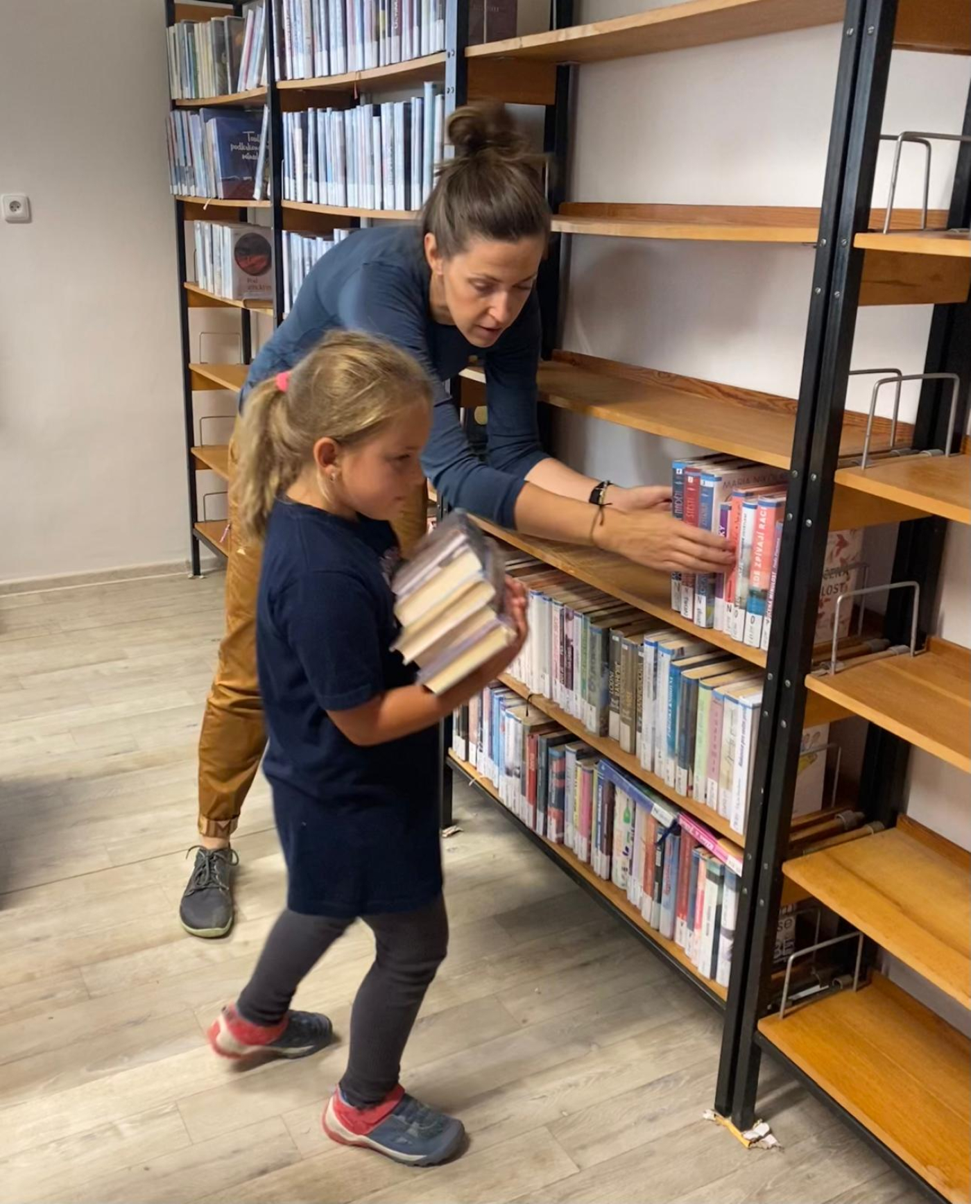 Děti od začátku nasadily takové tempo, že si paní knihovnice Jindra Novotná musela několikrát vyžádat krátkou přestávku, aby knihy správně narovnala do nových regálů.