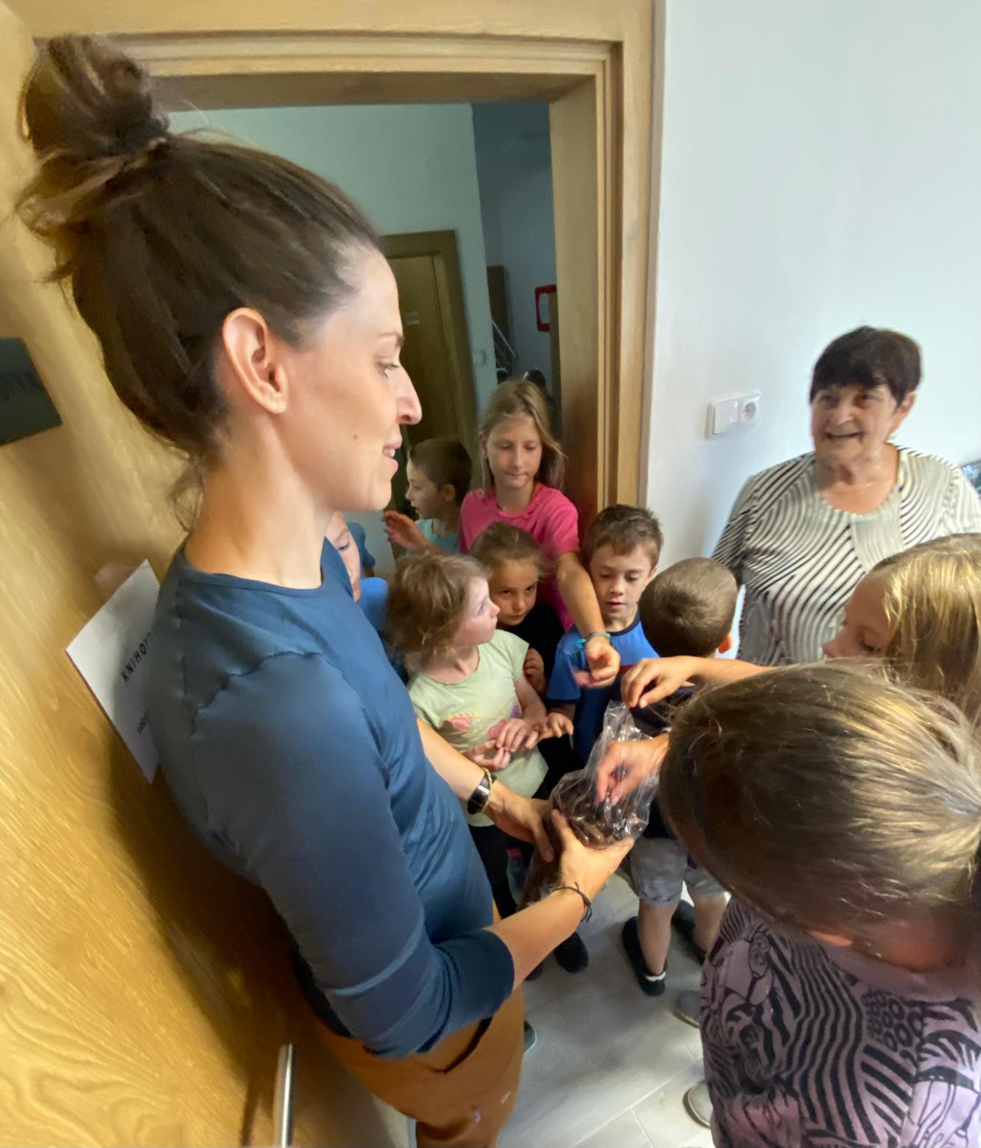 Děti za dobře odvedenou práci sklidily pochvalu nejen od svých učitelek, ale také od starosty Michala Poura a od paní Novotné. Ta jim předala i sladkou odměnu v podobě velkého kornoutu plného různých ořechů v čokoládě.