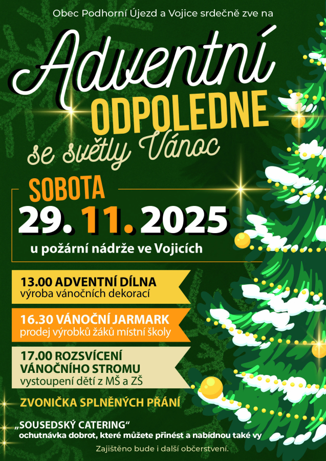 Srdečně zveme všechny občany na adventní odpoledne v naší obci. Dobrovolníci mohou přinést různé dobroty k ochutnávce s sebou. :)